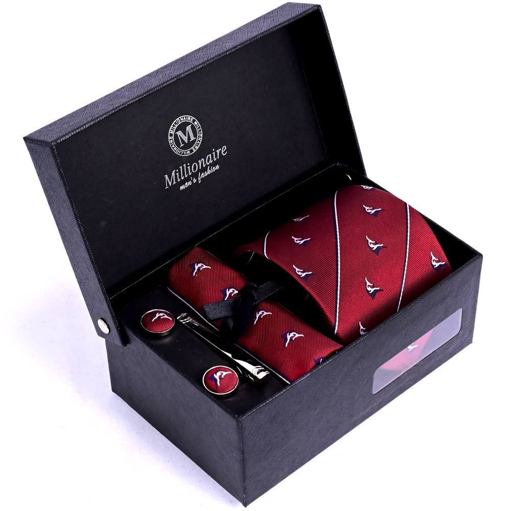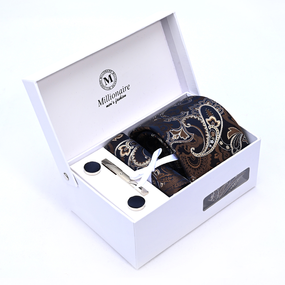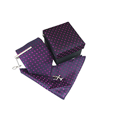 新款商務腰果套裝領帶方巾袖扣滌絲禮盒
